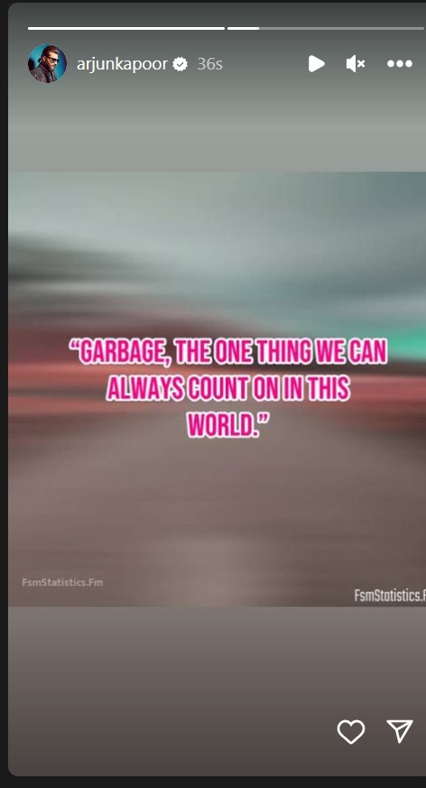 इन खबरों में कितनी सच्चाई है इसका खुलासा आधिकारिक तौर पर नहीं हुआ है। इन सबके बीच अर्जुन कपूर ने 'कचड़े' से जुड़ा एक पोस्ट शेयर किया है। एक्टर ने इंस्टा स्टोरी पर लिखा, ''कचड़ा, एक ऐसी चीज जिस पर इस दुनिया में हम हमेशा भरोसा कर सकते हैं।''