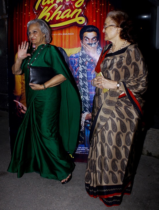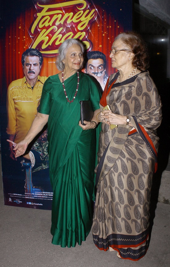 आशा पारेख और वहीदा रहमान इन दोनों अभिनेत्रियों ने अपनी-अपनी फ़िल्मों के जरिये एक मजबूत पहचान उस वक़्त बनाई थी जब एक से बढ़कर एक दिग्गज एक्टर्स सक्रिय थे। आशा पारेख के बारे में आपको याद दिला दें कि 1959 से 1973 के बीच वो हिंदी फ़िल्मों की टॉप अभिनेत्रियों में शुमार रही हैं। ‘कटी पतंग’ के लिए इन्हें बेस्ट अभिनेत्री का फ़िल्मफेयर अवार्ड मिला 1972 में और फ़िल्मों में योगदान के लिए फ़िल्मफेयर का ही लाइफ टाइम अचीवमेंट अवार्ड 2002 में मिला। इनके योगदान के लिए आइफा ने भी 2006 में स्पेशल पुरस्कार से सम्मानित किया। उन्होंने अपने समय के सभी प्रसिद्ध तथा सफल नायकों जैसे देव आनंद, गुरुदत्त, राजेंद्र कुमार, सुनील दत्त, धर्मेन्द्र, राजेश खन्ना, मनोज कुमार आदि के साथ काम किया। आशा पारेख ने हिंदी के अलावा गुजराती, पंजाबी और कन्नड़ फ़िल्मों में भी काम किया। उनकी गुजराती फ़िल्म 'अखंड सौभाग्यवती' को अपार सफलता मिली। ‘फन्ने ख़ान’ की स्क्रीनिंग के दौरान आशा पारेख और वहीदा रहमान कुछ इस अंदाज़ में कैमरे में कैद हुईं। आप देख सकते हैं दोनों इस मौके पर काफी सोबर लग रही हैं और उम्र के इस पड़ाव पर भी इनका चार्म बरकरार है।