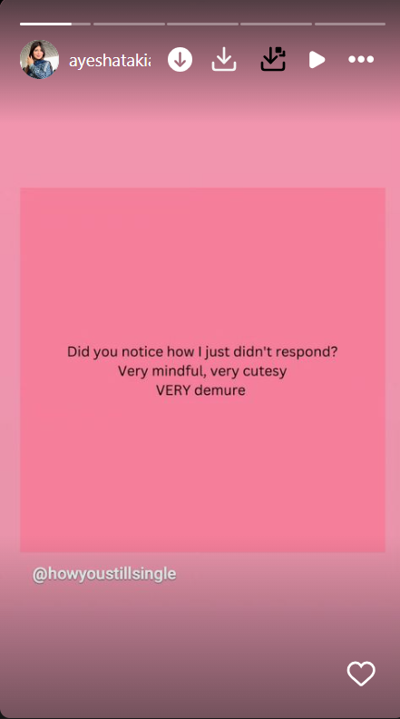 अब एक्ट्रेस ने एक तंज के साथ इंस्टाग्राम पर वापसी की है। उन्होंने काली टी और रिप्ड जींस में अपना एक बूमरैंग वीडियो पोस्ट किया, जिसका शीर्षक था 'बहुत संकोची, बहुत सावधान।' इसके साथ ही उन्होंने एक इंस्टा स्टोरी भी पोस्ट की जिसमें एक नोट लिखा है। नोट का कैप्शन है- 'क्या आपने देखा कि मैंने कैसे रिएक्ट नहीं किया? किसी को जवाब न देना ही सबसे सही चीज है, आप खुश रहेंगे।"