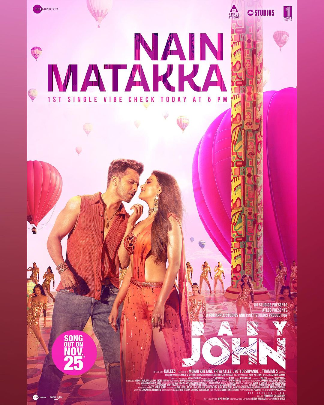 वरुण धवन की बेबी जॉन टीजर के बाद से ही चर्चा में है। अब मेकर्स ने मूवी का पहला गाना नैन मटक्का रिलीज कर दिया है। टीजर में आपको वरुण और कीर्ति सुरेश की केमिस्ट्री देखने को मिली थी। अब गानें में दोनों के डांस मूव्स देखकर आप खुद को थिरकने से नहीं रोक पाएंगे। गानें की खास बात ये भी है कि इसे फेमस पंजाबी सिंगर ने गाया है।