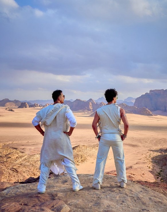 'बड़े मियां छोटे मियां' की शूटिंग जॉर्डन में हुई है। पोस्ट में अक्षय कुमार और टाइगर श्रॉफ व्हाइट कलर के आउटफिट में नजर आ रहे हैं। फोटो में दोनों कैमरे की तरफ पीठ करके पोज दे रहे हैं। पोस्ट के साथ कैप्शन में अक्षय कुमार ने लिखा, "जॉर्डन शुक्रिया कभी न भूलने वाला शूटिंग एक्सपीरियंस देने के लिए। जॉर्डन के लोगों ने जो प्यार और अपनापन 'बड़े मियां छोटे मियां' की पूरी टीम के लिए दिखाया है, मैं उसकी हमेशा सराहना करूंगा।"