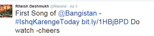 नई दिल्ली। रितेश देशमुख, पुलकित सम्राट और जैकलीन फर्नांडिस की फिल्म 'बंगिस्तान' का 'इश्क करेंगे' गाना रिलीज कर दिया गया है। इस गाने में सभी कलाकार छह अलग-अलग अवतार में नजर आएंगे। रितेश देशमुख ने टि्वटर पर यह गाना शेयर किया है।