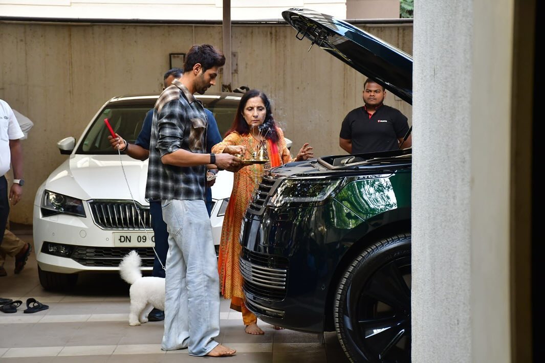 जिनमें कार्तिक आर्यन अपनी मां के साथ नई प्रीमियर कार का पूजन करते दिख रहे हैं। एक्टर की ये कार रेंज रोवर एसयूवी (Range Rover SUV) है, जिसका कलर बॉटल ग्रीन है। इस लग्जरी कार की मार्केट वैल्यू करीब 5.5 करोड़ से 6 करोड़ के बीच बताई जा रही है।