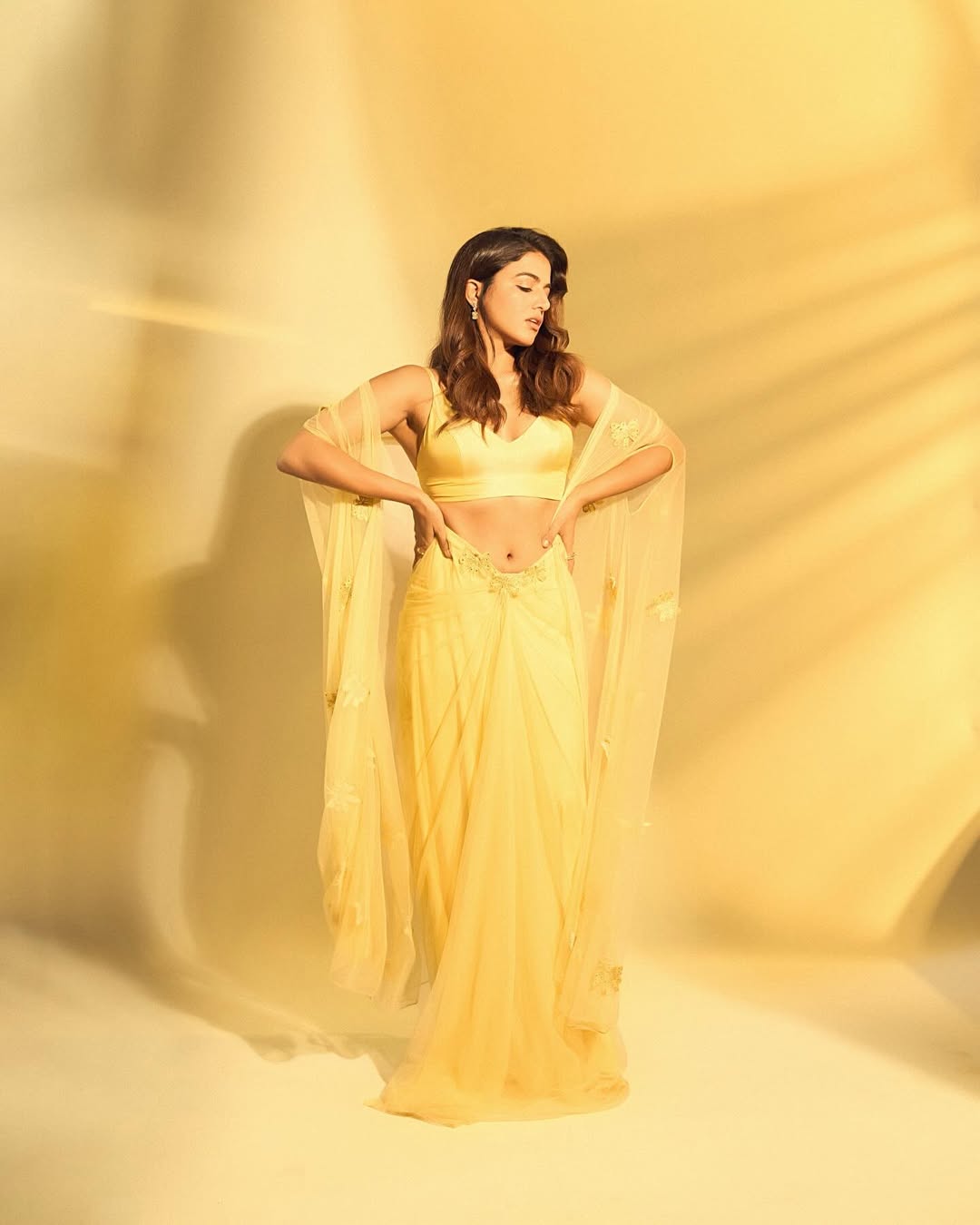 वामिका गब्बी ने शुक्रवार को अपनी लेटेस्ट फोटोज इंस्टाग्राम अकाउंट पर शेयर की हैं। तस्वीरों में वामिका पीले रंग के खूबसूरत लहंगे में नजर आ रही हैं। यह रंग उनकी सुंदरता को और भी बढ़ा रहा है और उन्हें एक अप्सरा जैसा रूप दे रहा है।