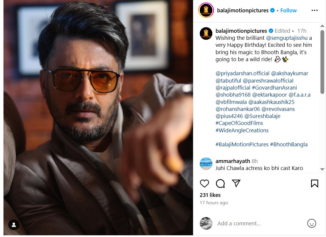 पोस्ट के कैप्शन में लिखा गया, 'पोस्ट में लिखा है कि शानदार जीशु सेनगुप्ता को जन्मदिन की बहुत-बहुत शुभकामनाएं। भूत बांग्ला में उनका जादू देखने के लिए उत्साहित हैं। यह एक रोमांचक सफर होने वाला है।'