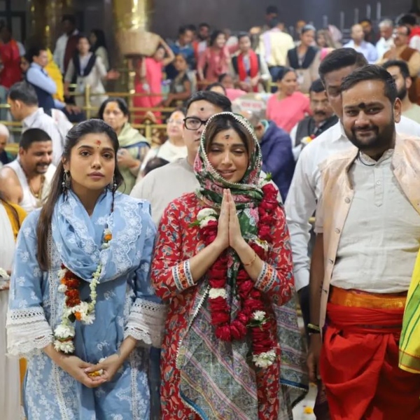 शनिवार को भूमि बाबा महाकाल के दर्शन करने उज्जैन पहुंची। बाबा के दर्शन करने भूमि के साथ उनकी बहन समीक्षा पेडनेकर भी उनके साथ नजर आई। इस दौरान दोनों ने माथे पर तिलक लगवाया और कलावा भी बंधवाया।