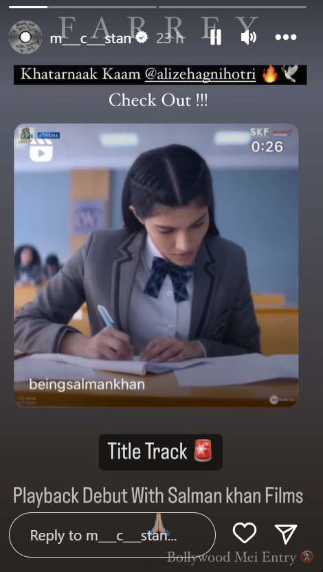 इसके आगे एमसी स्टेन ने लिखा 'टाइटल ट्रैक, सलमान खान फिल्म के साथ मेरा प्लेबैक डेब्यू, बॉलीवुड में एंट्री।