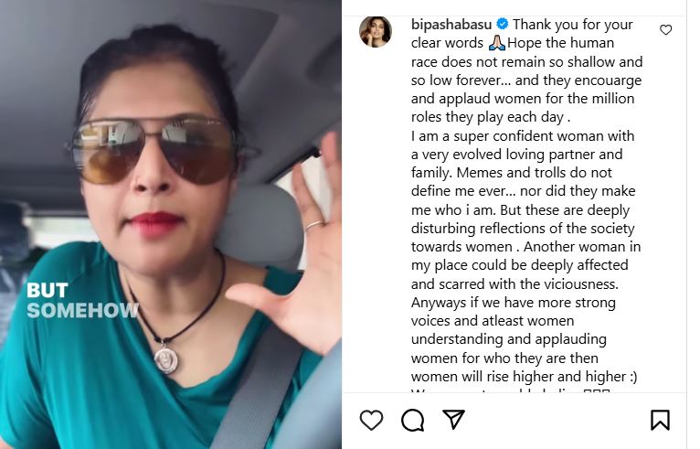 बिपाशा बसु ने आगे कहा, "मीम्स और ट्रोल्स ने मुझे कभी परिभाषित नहीं किया। न ही उन्होंने मुझे वह बनाया जो मैं हूं। मगर ये महिलाओं के प्रति समाज के गहरे परेशान करने वाले प्रतिबिंब हैं। मेरी जगह कोई और महिला इस क्रूरता से बहुत प्रभावित और आहत हो सकती थी। वैसे भी अगर हमारी आवाजें मजबूत होंगी और कम से कम महिलाएं महिलाओं को समझेंगी और उनकी सराहना करेंगी तो महिलाएं और ज्यादा ऊपर उठेंगी। हम अजेय महिलाएं हैं।"
