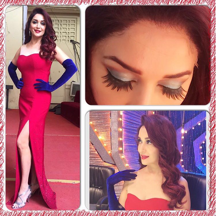 सिर्फ़ इंडियन ही नहीं माधुरी इस रेड हाई-थाई-स्लिट ऑउटफिट में आज भी कहर ढा रहीं हैं। ब्लू-वेलवेट हैंड-ग्लव्स और खुबसूरत ऑय-मेकअप और उनके वेवी हेयर हैं उनके इस लुक का बेस्ट पार्ट।