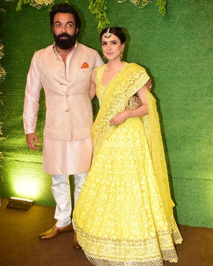 Bobby Deol and Tanya Deol looks so adorable as they dance together at Karan Deol’s Sangeet Ceremony.@thedeol #bobbydeol #KaranDeol #KaranDeolWedding #Bollywood #BobbyDeol pic.twitter.com/Dj1edziN88