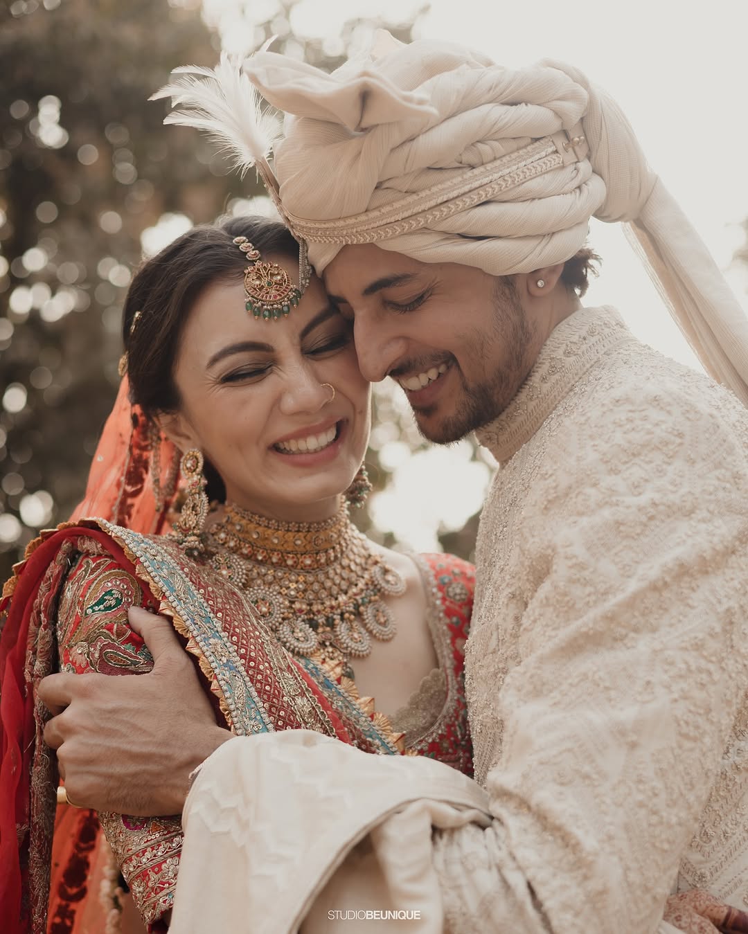 वहीं दर्शन रावल आइवरी-टोन्ड चिकनकारी शेरवानी में काफी स्मार्ट लग रहे थे, जिसके लिए उन्होंने मैचिंग पैंट और दोशाले कैरी किया था। फोटो में दर्शन मंडप में अपनी दुल्हन धरल के हाथ पर किस करते हुए भी नजर आए।