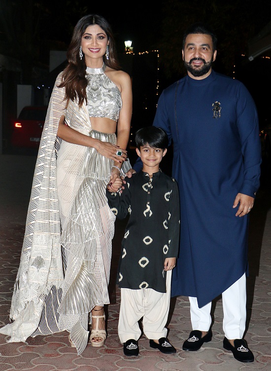 शिल्पा शेट्टी अपने पति राज कुंद्रा के साथ सभी मेहमानों का स्वागत करते दिखे। साथ में उनका प्यारा बेटा विहान भी मम्मी-पापा के साथ इस दिवाली पार्टी के लिए उत्साहित दिखा। आप देख सकते हैं इस मौके पर शिल्पा और उनका परिवार ट्रेडिशनल आउटफिट में कितने जंच रहे हैं। शिल्पा की दिलकश स्माइल की तो बात ही अलग है!