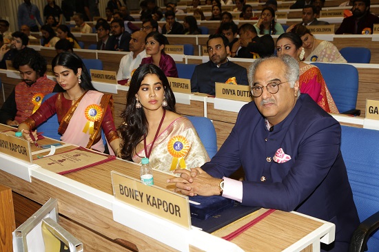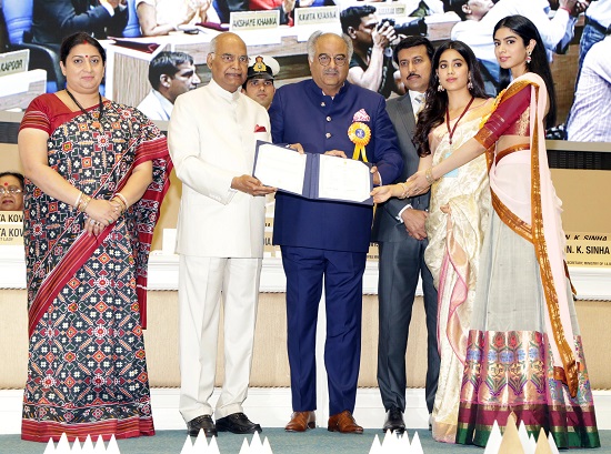 गौरतलब है कि विज्ञान भवन में आयोजित 65वें राष्ट्रीय फ़िल्म पुरस्कार समारोह में फ़िल्म समारोह निदेशालय द्वारा भारतीय सिनेमा में 2017 की सर्वश्रेष्ठ फ़िल्मों और कलाकारों को राष्ट्रीय फ़िल्म पुरस्कार प्रदान किये गए। इन तस्वीरों में आप देख सकते हैं देश के राष्ट्रपति श्री रामनाथ कोविंद के हाथों बोनी कपूर और उनकी बेटियों ने श्रीदेवी का नेशनल अवार्ड ग्रहण किया।