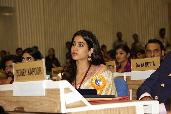 मुंबई। गुरुवार का दिन बॉलीवुड के लिए एक विशेष उपलब्धि का दिन रहा। इस दिन देश की राजधानी दिल्ली में 65वें राष्ट्रीय फ़िल्म पुरस्कार वितरण समारोह की धूम रही। सबसे ज्यादा चर्चा दिवंगत अभिनेत्री श्रीदेवी को लेकर हुई। बोनी कपूर ने अपनी दोनों बेटियों जाह्नवी कपूर और ख़ुशी कपूर के साथ श्रीदेवी का नेशनल अवार्ड ग्रहण किया।