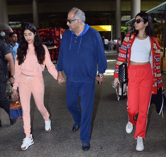 मुंबई। दिवंगत अभिनेत्री श्रीदेवी और फ़िल्म निर्माता बोनी कपूर की बड़ी बेटी जाह्नवी कपूर लंबे अर्से से अपनी डेब्यू फ़िल्म ‘धड़क’ के लिए चर्चा में हैं। यह फ़िल्म इसी महीने रिलीज़ हो रही है। ज़ाहिर है उनके लिए आने वाले कुछ दिन बेहद स्पेशल रहने वाले हैं। इस बीच सोमवार को बोनी कपूर अपनी दोनों बेटियों संग कुछ इस अंदाज़ में नज़र आये, जो आप इन तस्वीरों में देख सकते हैं!