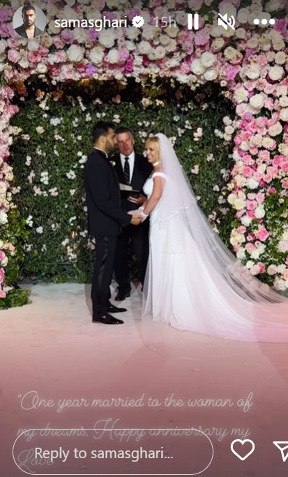 ब्रिटनी स्पीयर्स भले ही पति सैम को सोशल मीडिया पर मैरिज एनिवर्सरी की विशेज देने से बचती नजर आईं, लेकिन उनके पति सैम ने सिंगर को रोमांटिक अंदाज में विशेज दी हैं। इंस्टाग्राम हैंडल पर शेयर की गईं एक तस्वीर में सैम और ब्रिटनी एक-दूसरे का हाथ थामे हुए नजर आ रहे हैं। वहीं, एक वीडियो उनकी शादी का है। एक में सैम ने सिंगर को अपनी 'बेटर हाफ' बताया तो वहीं दूसरी स्टोरी में उन्होंने ब्रिटनी को 'मेरी सपनों की महिला' कहा।