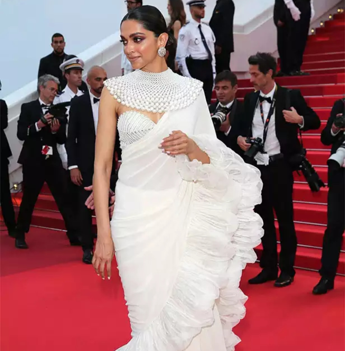 दीपिका पादुकोण ने कान्स पर में साल 2010 में डेब्यू किया था। इस कारपेट पर अभिनेत्री ने साड़ी से लेकर गाउन और गाउन तक, हर आउटफिट में कमाल दिखाया है। साल 2022 में उनका पहला लुक ब्लैक ऑफ-शोल्डर ब्लाउज के साथ ब्लैक और गोल्डन सब्यसाची साड़ी में था।