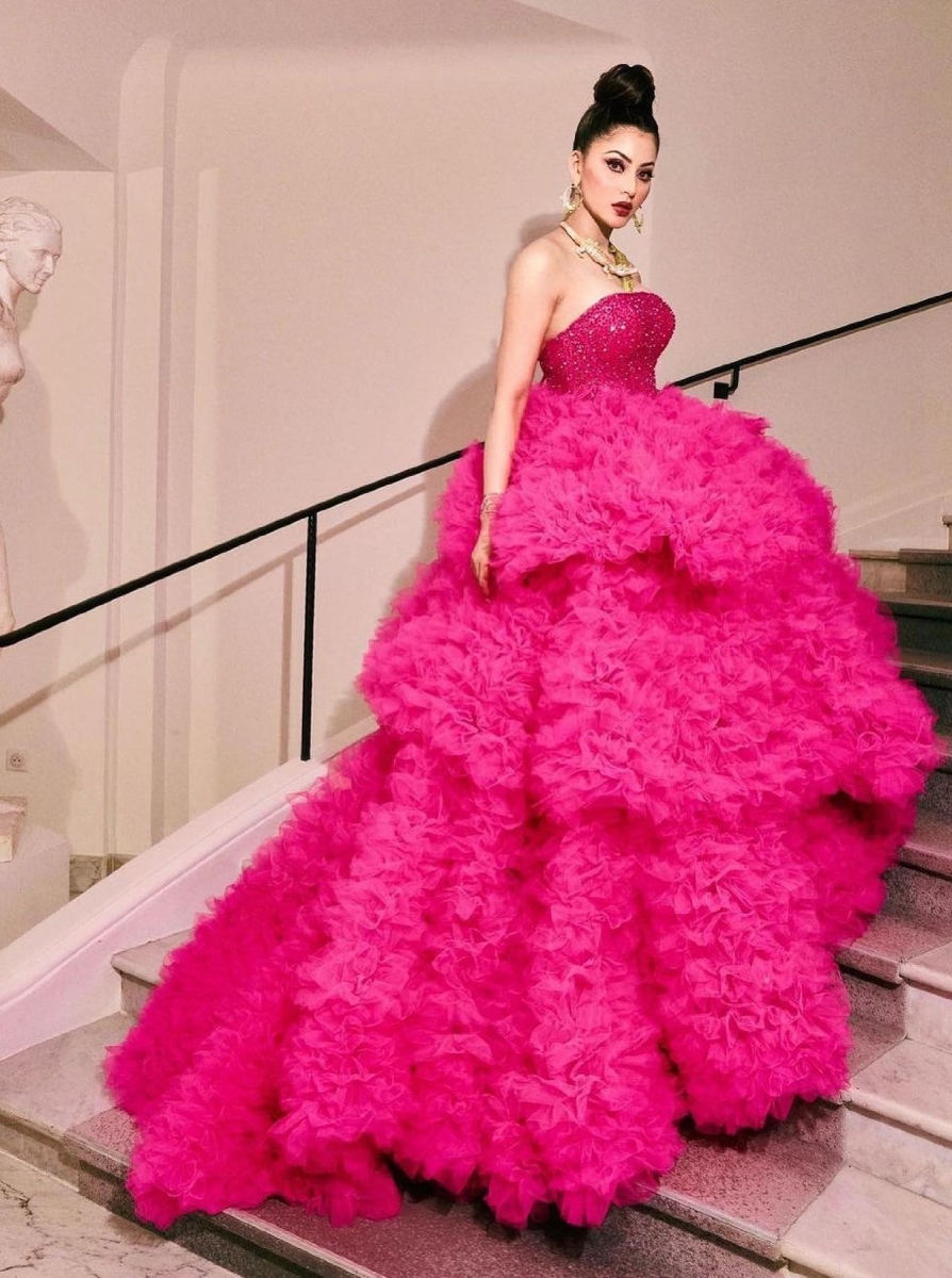 मानुषी छिल्लर के अलावा बॉलीवुड एक्ट्रेस उर्वशी रौतेला का भी एक लुक सामने आया है, जिसमे वह पिंक कलर के सिंड्रेला गाउन में नजर आ रही है। इसके साथ उन्होंने क्रोकोडाइल डिजाइन के नेकलेस को कैरी किया हुआ।