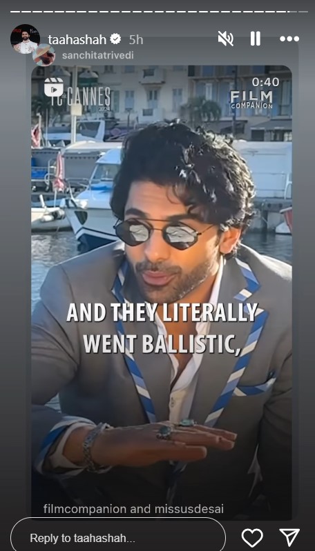 'ताजदार, ताजदार, ताजदार...' कान्स में हर तरफ इस नाम की पुकार है। फिल्म कंपेनियन को दिए इंटरव्यू में ताहा शाह ने बताया कि उन्हें न सिर्फ अपने देश में, बल्कि फॉरेन में भी बेशुमार प्यार मिल रहा है। 'हीरामंडी' एक्टर ने कहा, ''मैं अभी मलेशिया के कुछ लोगों से मिला। उन्होंने खूब प्यार दिया।''
