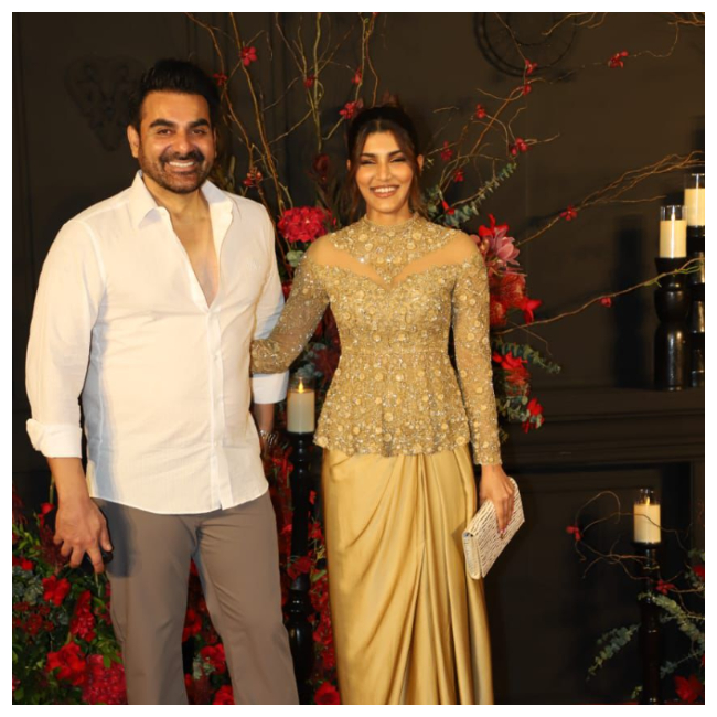 रिसेप्शन पार्टी में अरबाज खान भी शामिल हुए। उन्होंने पैपराजी को भतीजी अलिजेह अग्निहोत्री के साथ पोज दिए।