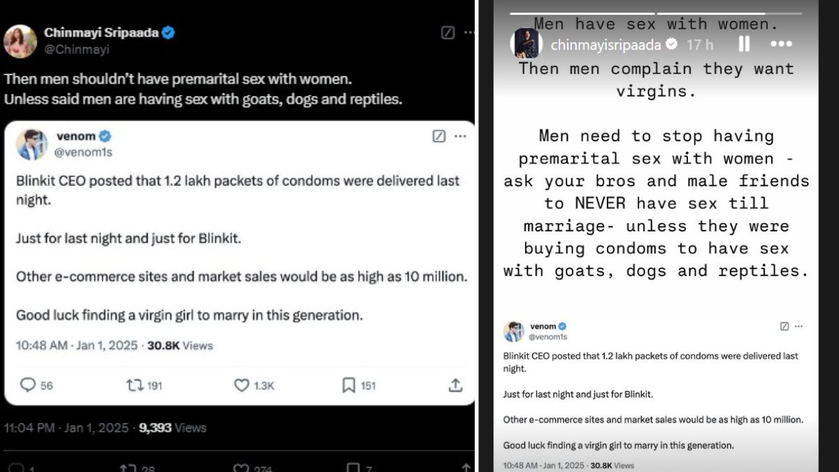 नए साल के मौके पर ऑनलाइन शॉपिंग प्लेटफॉर्म ब्लिंकिट सीईओ अलबिंदर ढींडसा ने सोशल मीडिया पोस्ट के जरिए सबसे अधिक खरीदे गए सामानों का ब्यौरा दिया था। जिसमें कंडोम की ब्रिकी का भी जिक्र था। जिस पर एक लड़के ने लड़कियों की वर्जिनिटी पर कमेंट किया। अब उसे साउथ सिंगर चिन्मयी श्रीपदा ने जमकर खरी-खोटी सुनाई है। आइए मामले को जानते हैं।