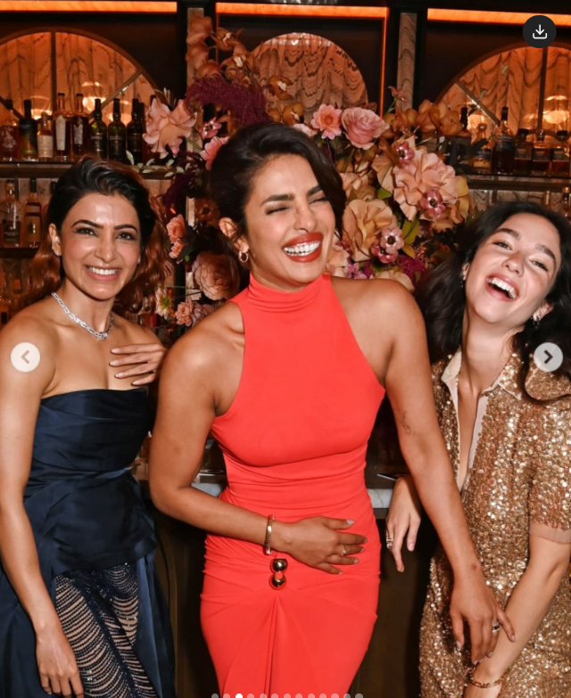 ऑनलाइन सामने आई तस्वीरों में प्रियंका और सामंथा को विशेष समारोह में कैमरे के लिए पोज देते देखा गया। आरेंज कलर की ड्रेस में प्रियंका चोपड़ा बेहद गार्जियस लग रही थीं। वहीं डार्क ब्लू कलर की ड्रेस में सामंथा भी खूबसूरती के मामले में उन्हें कड़ी टक्कर देती नजर आईं। इस दौरान इतावली अभिनेत्री मटिल्डा डी एंजेलिस भी नजर आईं जोकि इस सीरीज के इटैलियन वर्जन सिटाडेल डायना (Citadel Diana) में काम कर रही हैं।