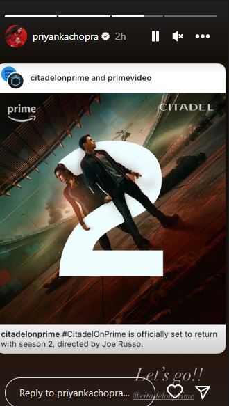 प्रियंका चोपड़ा ने भी इस पोस्ट को अपनी इंस्टा स्टोरी पर रिपोस्ट किया है, लेकिन सिटाडेल-2 के दूसरे सीजन की रिलीज डेट क्या होगी, ये जानकारी मेकर्स ने नहीं शेयर की है।