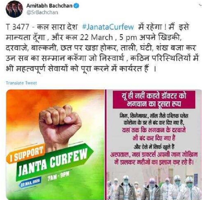 — Amitabh Bachchan (@SrBachchan) March 21, 2020