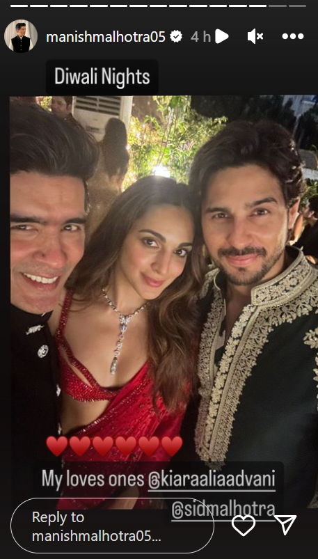 इस पार्टी में कियारा आडवाणी, सिद्धार्थ मल्होत्रा, भूमि पेडनेकर, विक्की कौशल और डिजाइनर मनीष मल्होत्रा समेत कई अन्य सेलेब्स शामिल हुए। मनीष मल्होत्रा ने अब अपने सोशल मीडिया हैंडल पर इस पार्टी की कई इनसाइड तस्वीरें शेयर की हैं। इन फोटोज में सेलेब्स का ग्लैमरस लुक देखने को मिल रहा है।