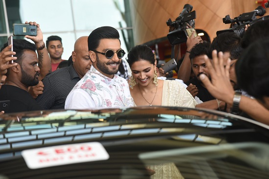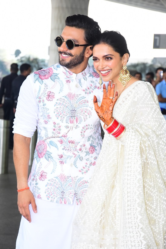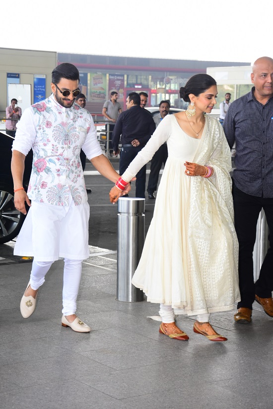 मुंबई एयरपोर्ट पर भी दोनों के पहुंचते ही गहमागहमी बढ़ गयी थी। हर किसी की नज़र इस नवविवाहित जोड़ी पर ही टिकी रही! रणवीर का हाथ थामे दीपिका की एक प्यारी सी तस्वीर भी देखें-