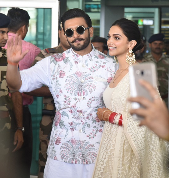 इससे पहले यह जोड़ी बेंगलुरु एयरपोर्ट पर इस अंदाज़ में नज़र आई थी! रणवीर और दीपिका इस मौके पर बिल्कुल ट्रेडिशनल अंदाज़ में नज़र आये। फूलों के डिज़ाइन वाले जैकेट में गोगल्स लगाये रणवीर अपने आउटफिट में काफी जंच रहे हैं तो वहीं दीपिका भी इस स्टाइलिश आउटफिट में काफी खिल रही हैं!