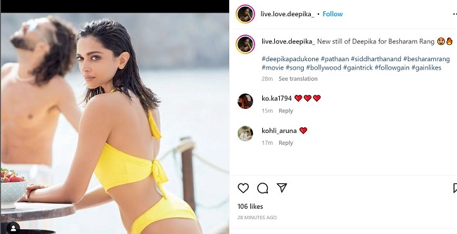 दीपिका पादुकोण की इससे पहले गोल्डन मोनोकिनी पहने तस्वीरें रिलीज हुई थी, जिसने इंटरनेट पर आग लगा दी थी। अब शनिवार को भी कुछ ऐसा ही होता नजर आ रहा है। उनकी येलो रंग की बिकिनी पहने तस्वीरें रिलीज की गई है। इसमें उनका स्लिम और टोंड फिगर भी नजर आ रहा है। वह काफी हॉट और बोल्ड पोज दे रही है। दीपिका पादुकोण ने इसके पहले कॉकटेल, हैप्पी न्यू ईयर और गहराइयां जैसी फिल्मों में बोल्ड रोल किये है लेकिन इस फिल्म में वह पहले के मुकाबले अधिक हॉट नजर आएंगी।