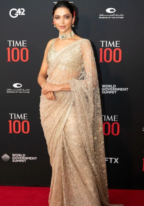 विदेशों में होने वाले इवेंट के साथ-साथ दीपिका पादुकोण ने इंडिया में होने वाले कई इवेंट्स में भी साड़ी पहनकर भारतीय संस्कृति को रिप्रेजेंट किया। उन्हें इंडियन लुक में देख फैंस अक्सर अपना दिल हार बैठते हैं। कान्स फिल्म फेस्टिवल के अलावा टाइम 100 इम्पेक्ट अवॉर्ड को अटेंड करने पहुंची गोल्डन रंग की शिमरी साड़ी के साथ स्लीवलेस ब्लाउज और न्यूड मेकअप लुक से हर किसी का दिल जीत लिया था।
