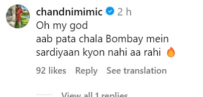 एक यूजर ने कमेंट कर लिखा है- ''ठंड लग जाएगी, फिर छींकती फिरोगी।'' दूसरे यूजर ने लिखा है- ''अब पता चला है कि मुंबई में सर्दी क्यों नहीं पड़ रही।'' इसके अलावा अन्य कई यूजर्स जाह्नवी कपूर की इन लेटेस्ट फोटो की तारीफ कर रहे हैं।