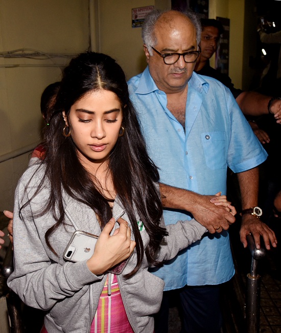 अर्जुन कपूर को छोड़ 'धड़क' स्पेशल स्क्रीनिंग में जाह्नवी संग दिखा पूरा परिवार, देखें तस्वीरें