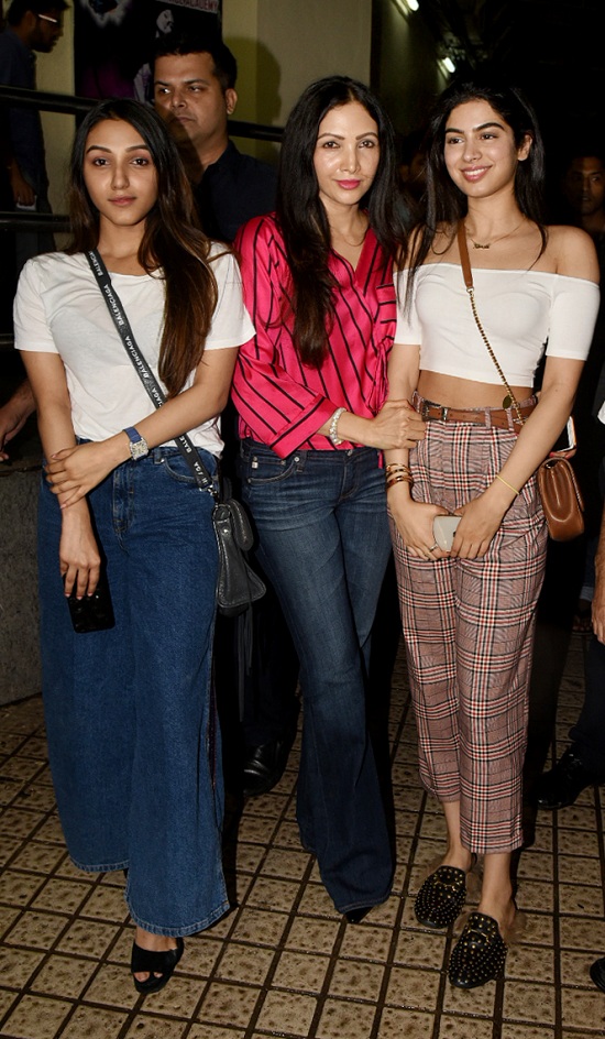 अनिल कपूर की दोनों बेटियां सोनम कपूर और रिया कपूर भी 'धड़क' देखने पहुंची। सोनम कपूर के बारे में आप जानते हैं कि जाह्नवी की तारीफ में वो सोशल मीडिया पर भी लगातार लिखती रही हैं।