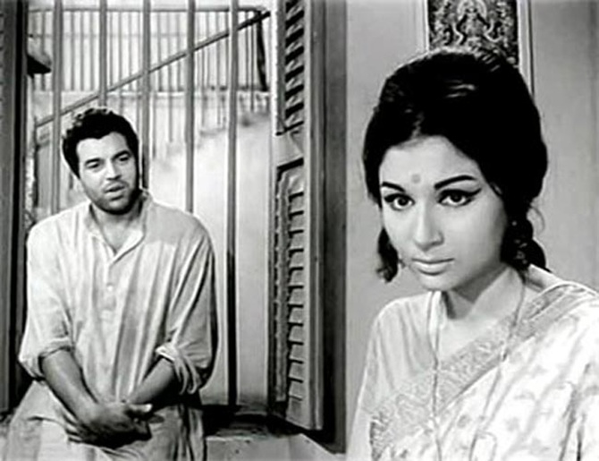 साठ के दशक में धर्मेंद्र और शर्मिला ने कई यादगार फ़िल्में की हैं। दोनों ने पहली बार 1966 की फ़िल्म 'अनुपमा' में साथ काम किया था। ये फ़िल्म भी हिंदी सिनेमा की क्लासिक्स में शामिल हैं। फ़िल्म एक पिता और उसकी बेटी के कमज़ोर होते भावनात्मक रिश्ते की कहानी थी। बेटी के रोल में शर्मिला टैगोर थीं, जबकि धर्मेंद्र ने लेखक और शिक्षक का किरदार निभाया था। ऋषिकेष मुखर्जी डायरेक्टिड फ़िल्म में धर्मेंद्र का किरदार काफी संजीदा था, जबकि शर्मिला को फ़िल्म में तक़रीबन चुप ही दिखाया गया था। पिता की उपेक्षा और तानों से डरी-सहमी लड़की का दर्द शर्मिला की बड़ी-बड़ी आंखों से बेसाख्ता झलका, वहीं एक संवेदनशील और संकोची युवक के किरदार को धर्मेंद्र ने बड़ी सहजता से जीया।