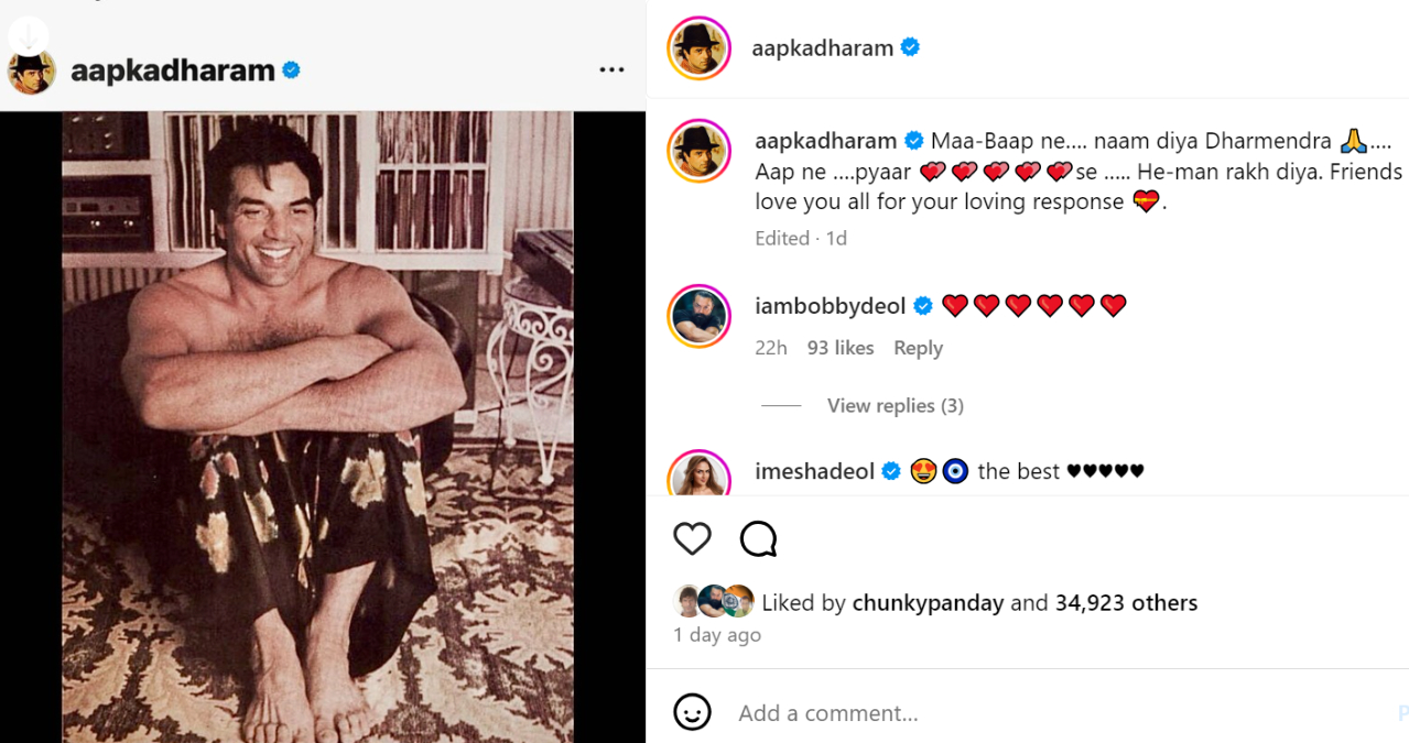 ये भी पढ़ें- Dharmendra ने उदास चेहरे के साथ पोस्ट की तस्वीर, चिंता में फैंस बोले- आप ऐसे मत बैठा...