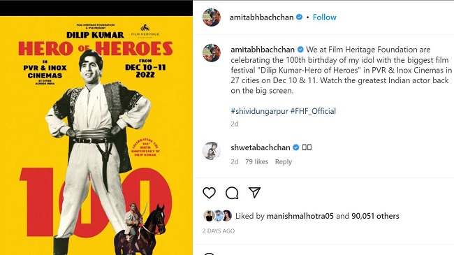 दिलीप कुमार की 100 वीं जयंती पर फिल्म हेरिटेज फाउंडेशन कई फिल्में भी दिखा रहा है