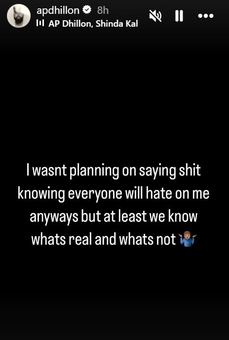 दिलजीत दोसांझ के बयान के बाद जहां लोग उनकी तारीफ कर रहे हैं, वहीं एपी ढिल्लों को ट्रोल किया जा रहा है। ट्रोल्स पर सिंगर का रिएक्शन आया है। उन्होंने इंस्टाग्राम स्टोरी पर लिखा, "मैं कुछ भी कहने की प्लानिंग नहीं कर रहा था, यह जानते हुए कि हर कोई मुझसे नफरत करेगा लेकिन कम से कम हम जानते हैं कि क्या सच है और क्या नहीं।"