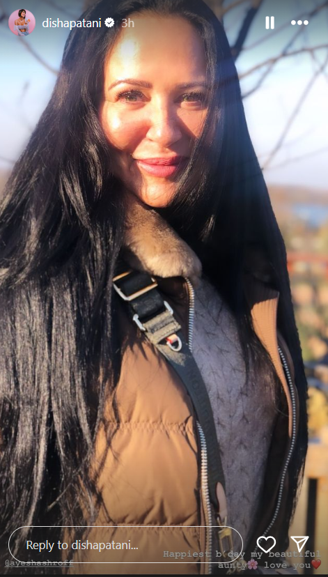 भले ही दिशा और टाइगर के अपने रास्ते अलग कर लिए हो, लेकिन एक्ट्रेस की दोस्ती उनके परिवार वालों के साथ आज भी वैसी ही हैं, जैसी पहले थी। आयशा श्रॉफ (Ayesha Shroff) के जन्मदिन पर दिशा ने अपनी इंस्टाग्राम स्टोरी पर आयशा की एक प्यारी सी तस्वीर पोस्ट कर कैप्शन में लिखा, “हैप्पी बर्थडे मेरी खूबसूरत आंटी, लव यू।