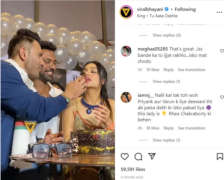 एक यूजर ने लिखा, 'ये लड़की मुझे स्पलिट्सविला के टाइम से ही पसंद नहीं थी, प्रियंक तो निबेदिता के साथ गेम खेल रहा था वह ही अच्छा लग रहा था देख कर। इस लड़की से मुझे अजीब वाइब्स पहले दिन से आ रही थी फिर बिग बॉस में जाकर प्रियंक को जो पब्लिकली बेइज्जक किया उसके बाद पता चल गया ये पब्लिसिटी के लिए कुछ भी करेगी। अच्छा हुआ वरुण इससे बच गया।'