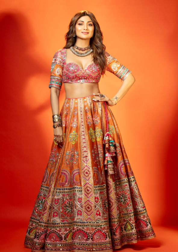 फिटनेस क्वीन शिल्पा शेट्टी आए दिन अपने परफेक्ट फिगर को फ्लॉन्ट करती रहती हैं। अगर आप दिवाली के दिन कपड़ें चूज करने के लिए कंफ्यूज हैं, तो आप भी शिल्पा जैसा एथनिक लुक रीक्रिएट कर सकते हैं। आप भी शिल्पा जैसा मल्टीकलर लहंगा पहन कर अपने लुक को खास बना सकती हैं। यह लुक आपकी दिवाली पार्टी में चार चांद लगा देगा।
