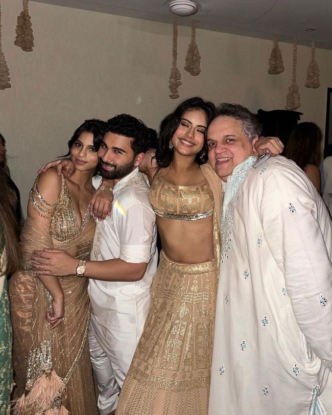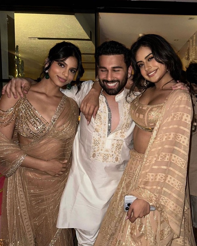 सुहाना खान ने इस अवसर पर गोल्डन कलर की साड़ी पहन रखी थी। उन्होंने अपने बाल खोल रखे थे और उन्होंने ईयररिंग पहन रखी थी। न्यासा देवगन ने गोल्डन कलर का लहंगा पहन रखा था और मैचिंग इयरिंग पहन रखी थी। एक तस्वीर में न्यासा देवगन और सुहाना खान एक-दूसरे के साथ खड़ी है। दोनों के दोस्त ओरहान भी फोटो में नजर आ रहे हैं। एक फोटो में संदीप खोसला भी नजर आ रहे हैं।