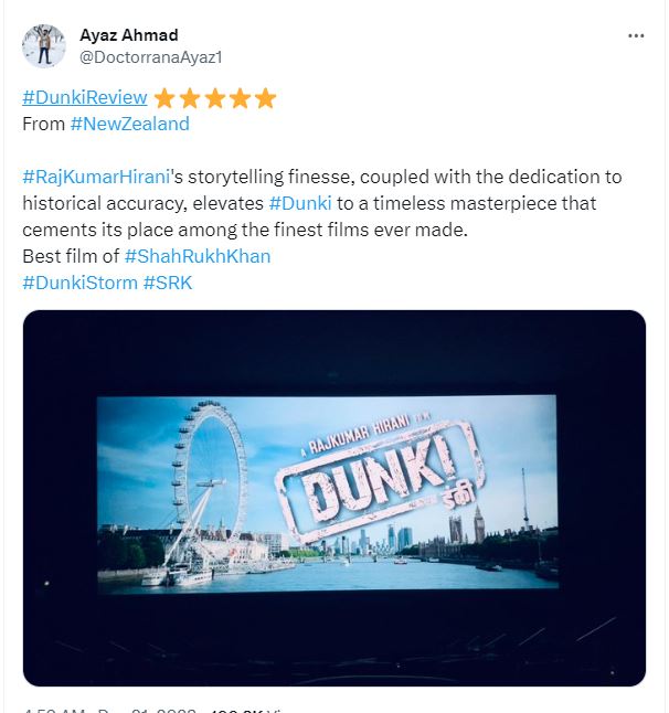 अन्य यूजर ने लिखा, "डंकी एक ऐसी फिल्म है, जिसका बतौर ऑडियंस हम कई सालों से इंतजार कर रहे हैं। ये एक मास्टर पीस है"। फैंस डंकी की तारीफ करते हुए नहीं थक रहे हैं।