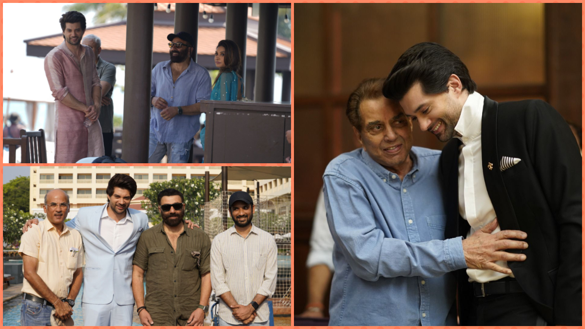 सनी देओल के परिवार में इस समय खुशियों की लाइन लगी हुई है। हाल ही में उनकी फिल्म 'गदर 2' ब्लॉकबस्टर साबित हुई है। इस फिल्म ने घरेलू बॉक्स ऑफिस और वर्ल्डवाइड 600 करोड़ से ज्यादा का कारोबार कर लिया है। वहीं, उनके छोटे बेटे राजवीर देओल भी फिल्म 'दोनों' से डेब्यू कर रहे हैं। हाल ही में, अवनीश बड़जात्या द्वारा निर्देशित राजवीर देओल और पलोमा स्टारर फिल्म 'दोनों' का ट्रेलर रिलीज हुआ था। यह ट्रेलर लोगों को खूब पसंद आया। इस फिल्म की शूटिंग के दौरान राजवीर के बड़े पापा यानी धर्मेंद्र और और पिता सनी देओल उन्हें सपोर्ट करने पहुंचे, जिसकी कुछ तस्वीरें वायरल हो रही हैं। यहां पढ़ें पूरी खबर...