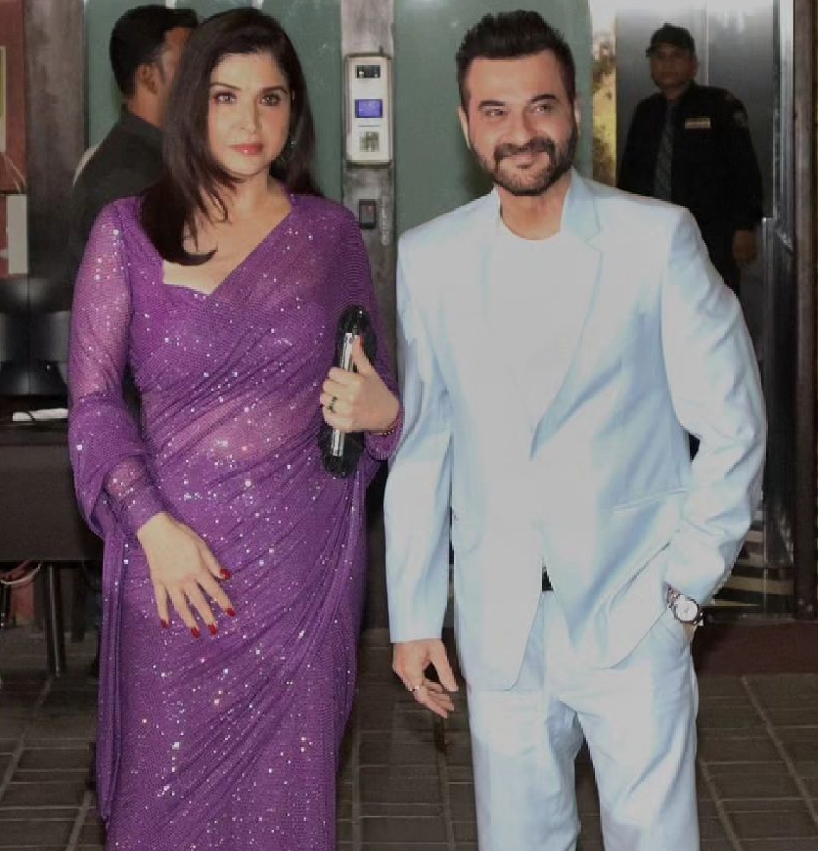 अरबाज खान और शूरा खान की शादी में एक्टर संजय कपूर अपनी वाइफ महीप कपूर के साथ शामिल हुए। इस मौके पर महीप पर्पल कलर की साड़ी में खूबसूरत नजर आई।