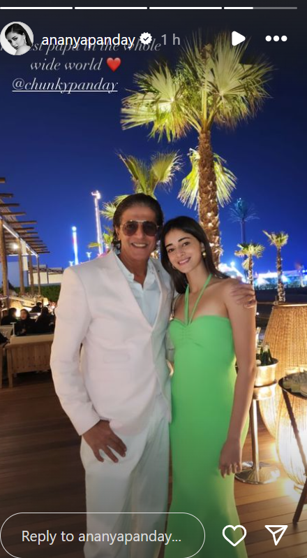 अनन्या ने अपने इंस्टाग्राम की स्टोरी पर पिता चंकी पांडे के साथ एक फोटो शेयर की है और कैप्शन में लिखा कि आप दुनिया के बेस्ट पापा हैं।