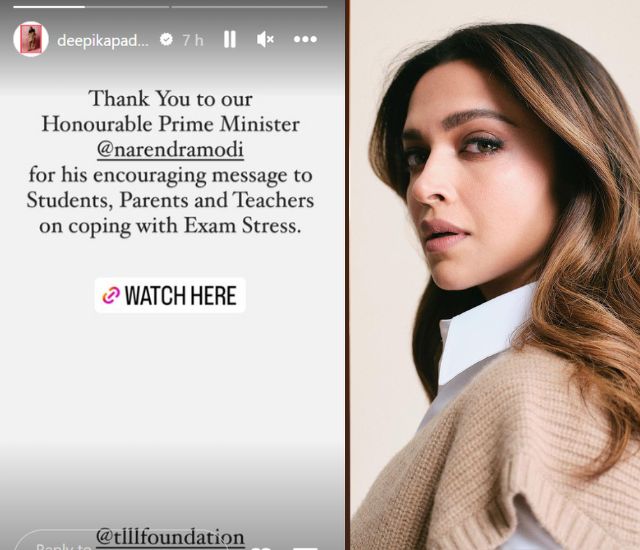 इस स्टोरी में दीपिका ने पीएम के परीक्षा पे चर्चा कार्यक्रम का लिंक साझा किया और लिखा है- हमारे आदरणीय प्रधानमंत्री नरेंद्र मोदी आपका बहुत-बहुत धन्यवाद। जिस तरह से आपने स्कूली बच्चों, उनके माता-पिता और टीचर्स से परीक्षा के तनाव से बचने को लेकर जो बात की है, वो काबिल ए तारीफ है। आलम ये है कि दीपिका पादुकोण के इस पोस्ट को काफी पसंद किया जा रहा है।