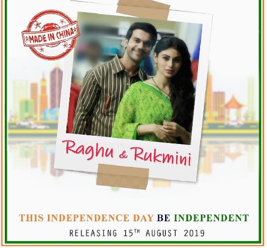 रूपेशकुमार गुप्ता, मुंबई l राजकुमार राव और मौनी रॉय की फिल्म मेड इन चाइना 15 अगस्त 2019 को रिलीज़ होगीl यह फिल्म एक कॉमेडी फिल्म हैl फिल्म का पहला लुक जारी किया गया है जिसमें राजकुमार और मौनी की सादगी भरी तस्वीर दिखाई गई है।